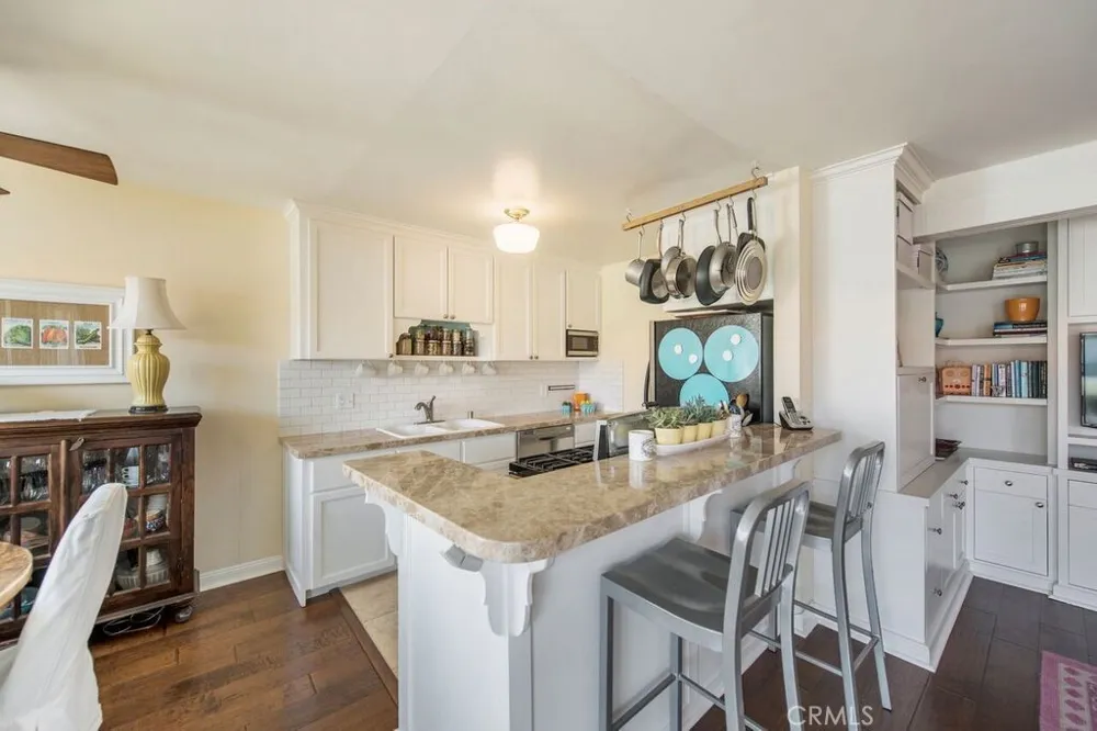 Rare updated condo for rent in the highly desirable, Apple Tree complex. Classic beach living in beautiful Hermosa Beach! Located steps from the Greenbelt, one short block to Pier Avenue, amazing restaurants, shopping and the beach! This spacious, west-facing, two bedroom residence with a gorgeous open floor plan and large balcony is perfect for entertaining and allows a ton of light in to the unit. It also gets a nice ocean breeze and boasts some wonderful sunset views. Enjoy hardwood floors, updated fixtures, remodeled kitchen with white shaker style cabinets, granite counters, subway tile backsplash, stainless steel appliances and built-in cabinets. Comes with 2 side-by-side-parking spaces. This secured access building, shares the benefit of a heated pool, spa, and convenient laundry room inside the complex. Photos are from when a previous resident lived in the condo.